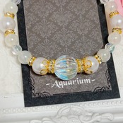 ブレスレットのビーズは主に8ミリサイズのビーズで作っており、メインの飾りとなるビーズは10〜14mmほどの大きめのビーズを使用しております。