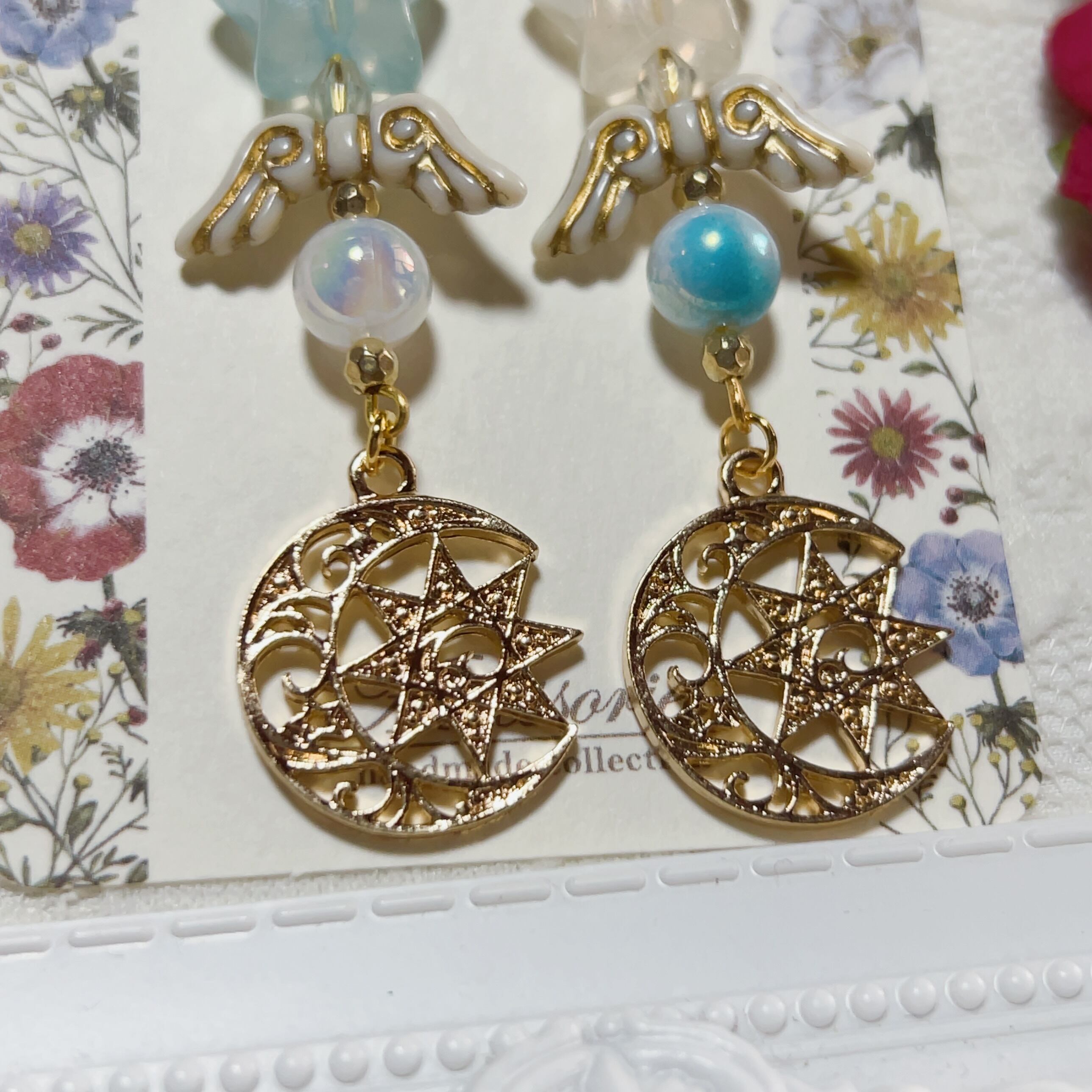 【E34-E35】お星様と惑星、ちょっと大人なゆめかわイヤリング(2色)