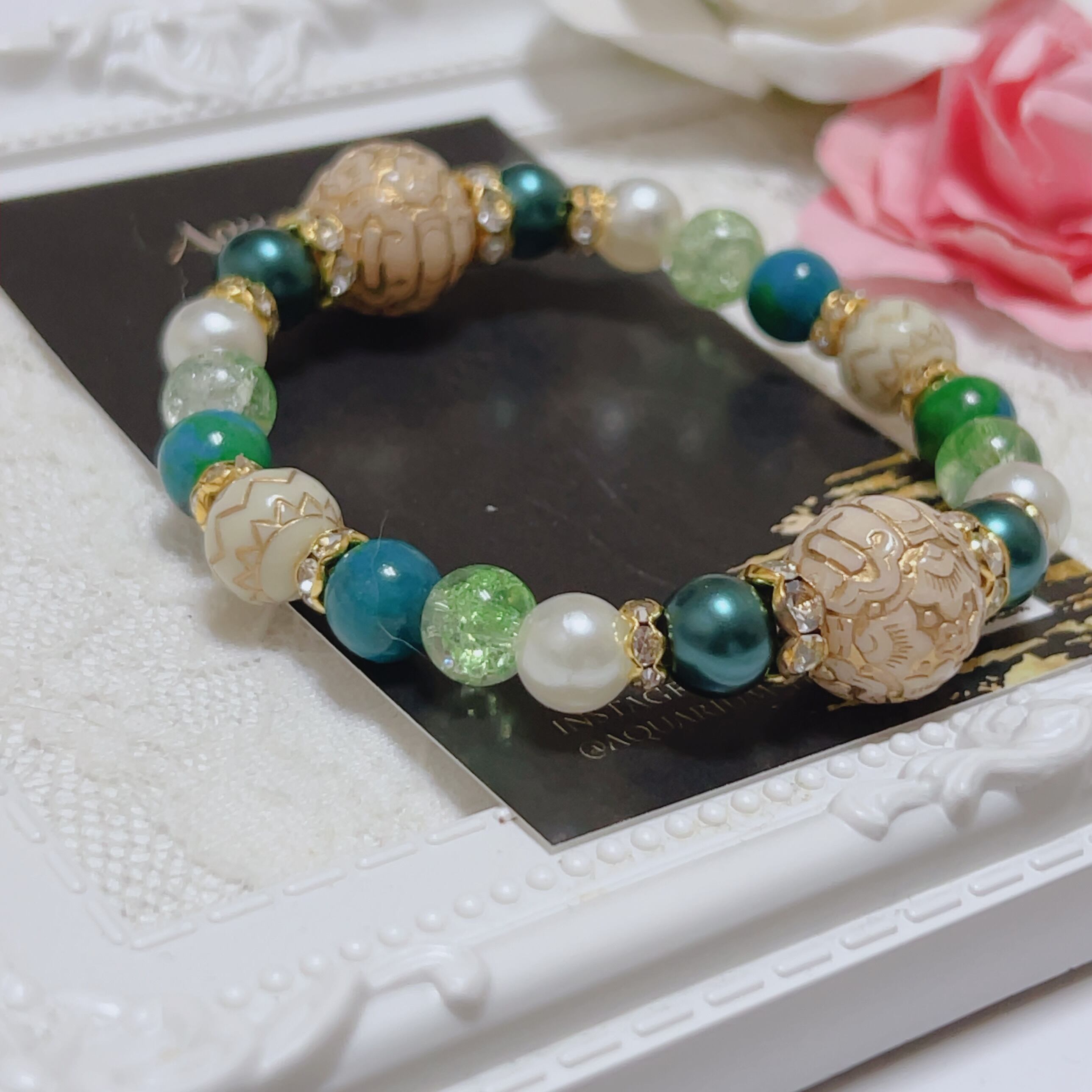 【B838】白アンティーク×グリーンで大人っぽく