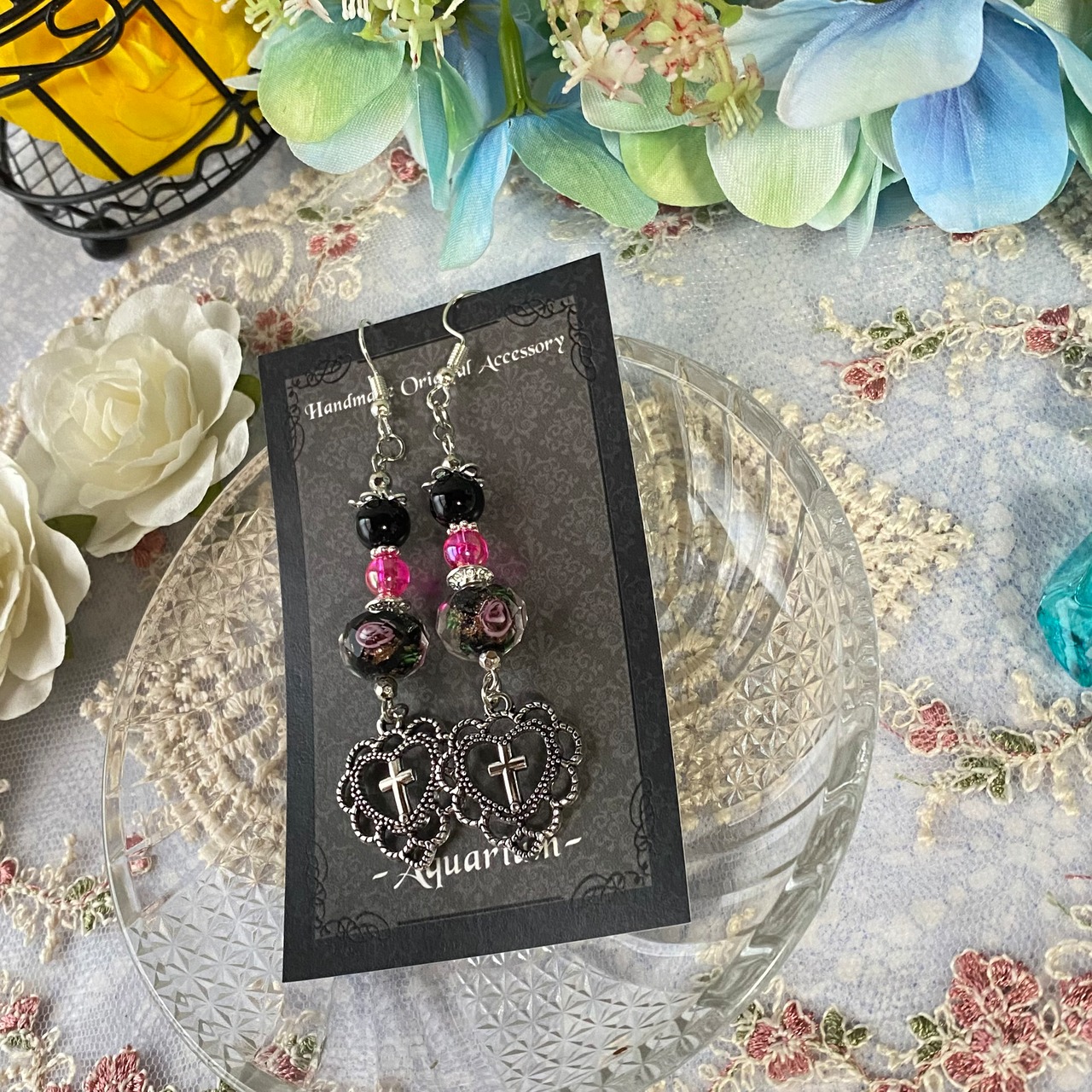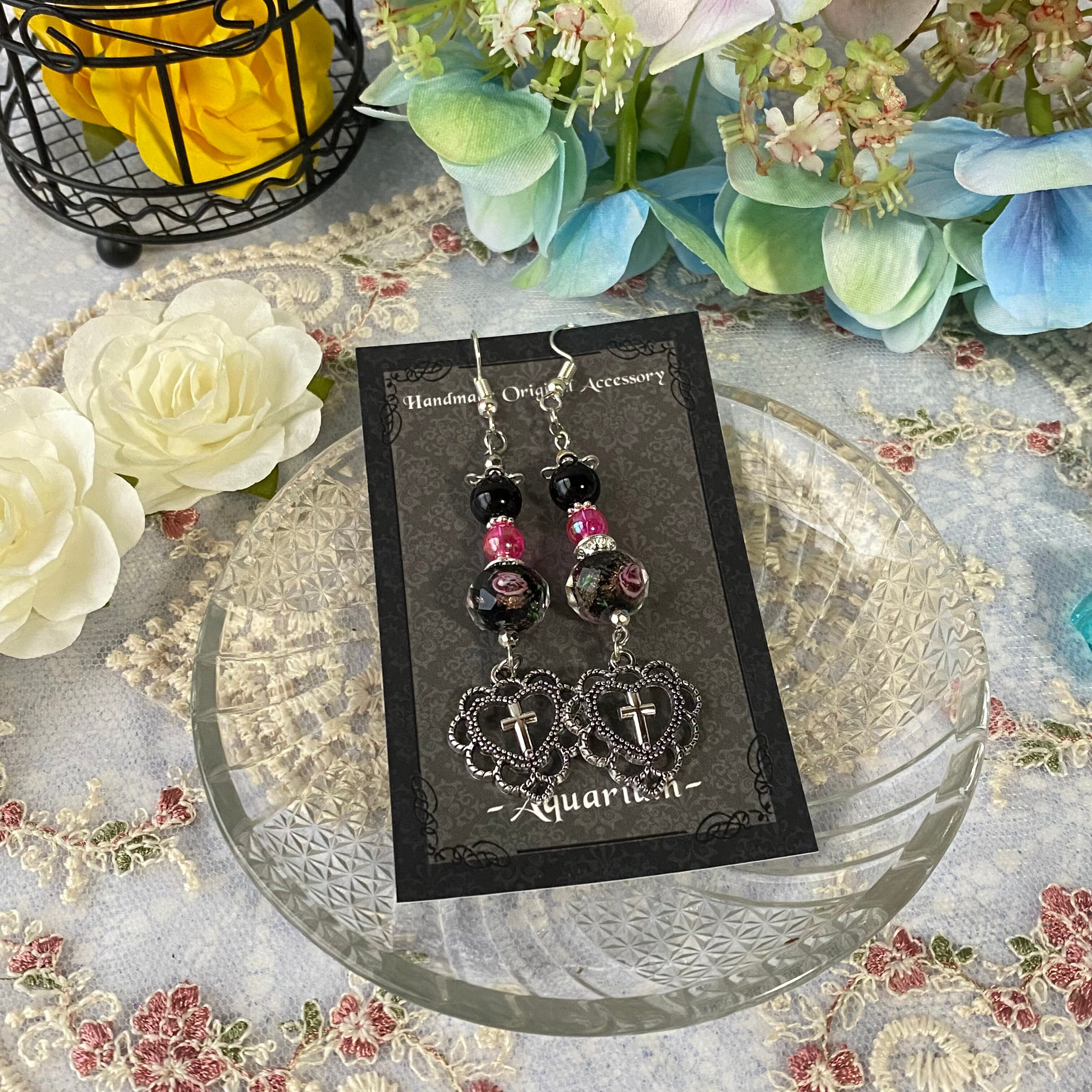 前回更新した「闇夜の薔薇」シリーズのピアスVer.となります。