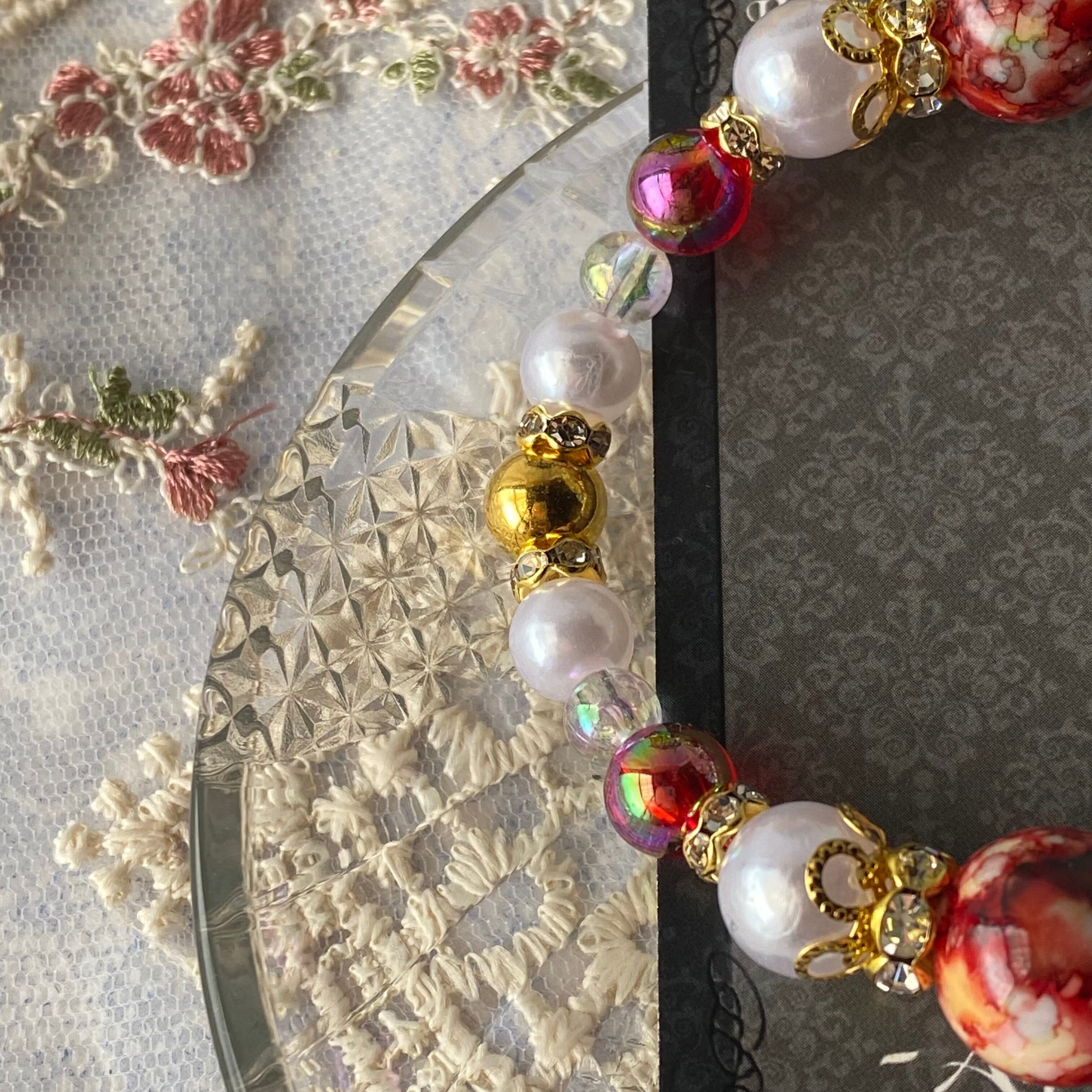【B606】レッド系マーブル、情熱的なブレスレット