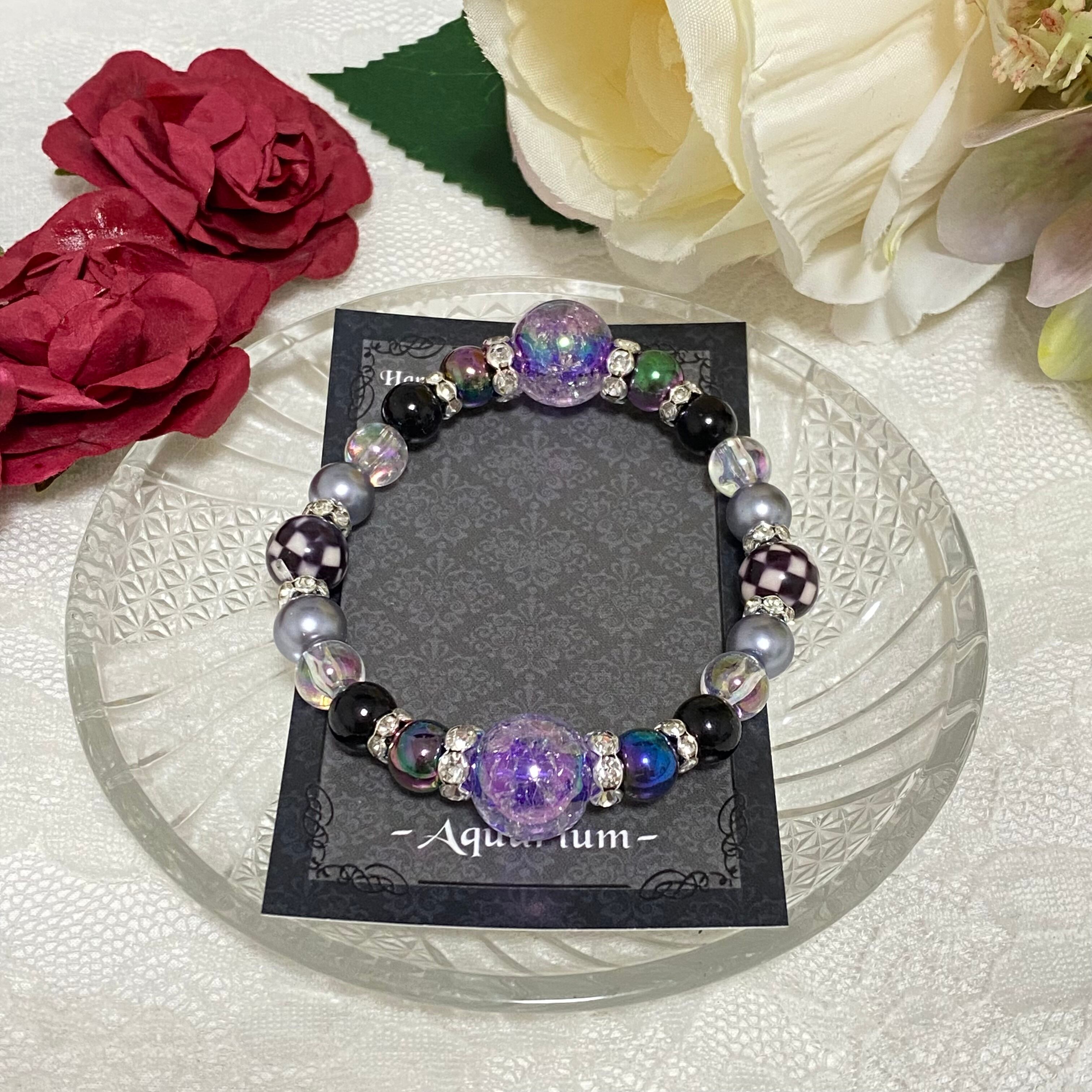 ブレスレットのビーズは主に8ミリサイズのビーズで作っており、メインの飾りとなるビーズは10〜14mmほどの大きめのビーズを使用しております。