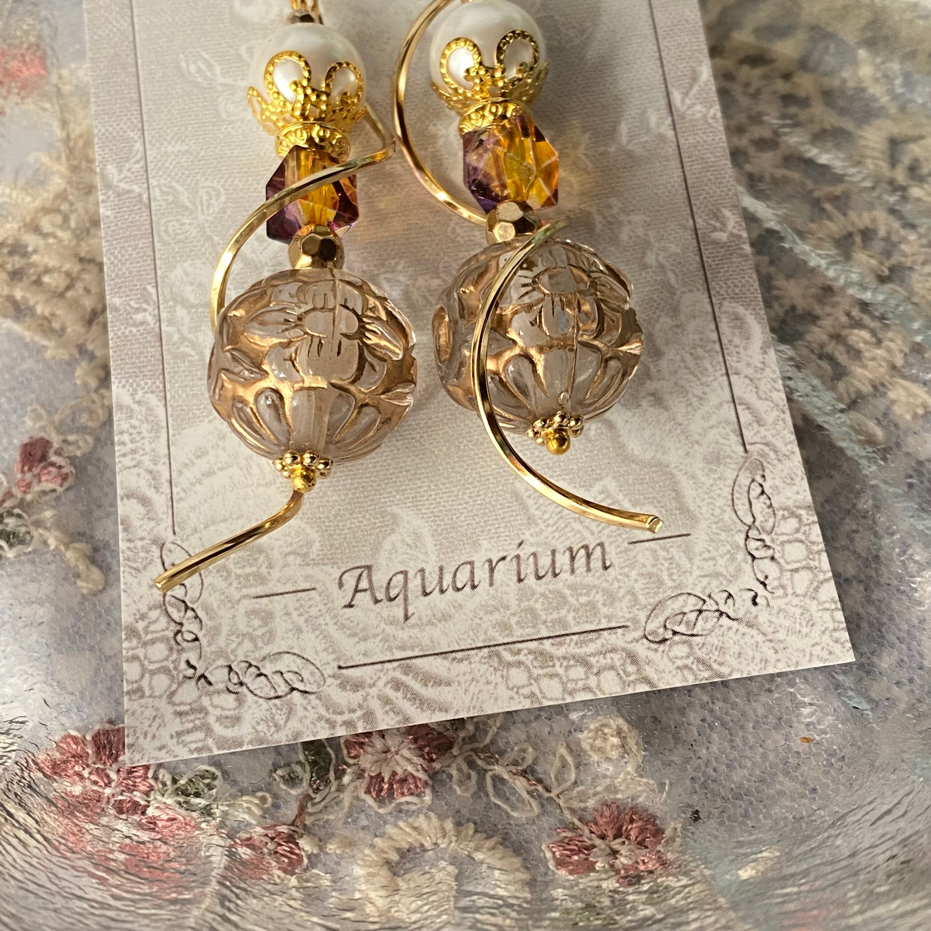 【P719】秋色のアンティークをウェーブに乗せて(ピアス)