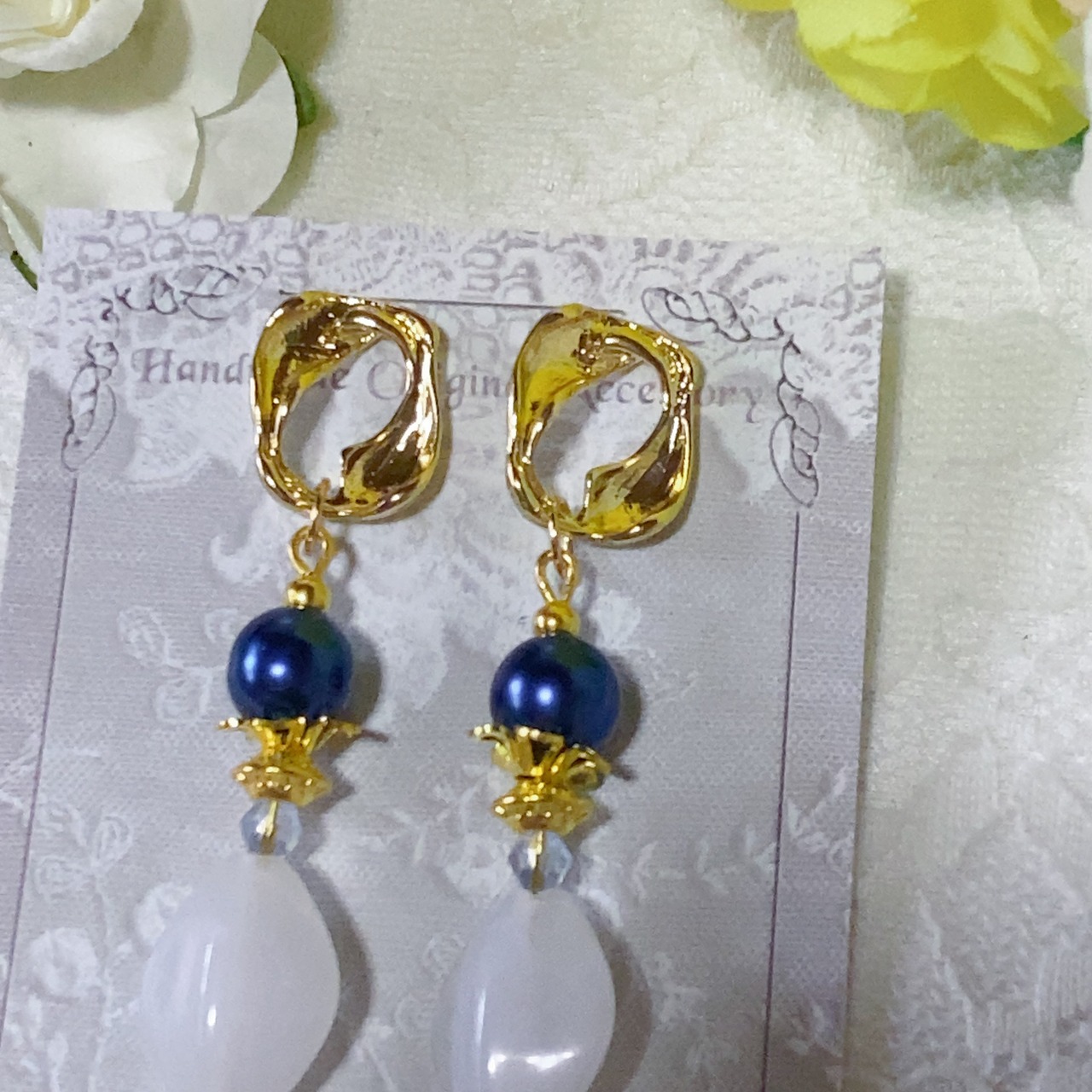 【P773】ネイビーファーと白のクール系可愛いピアス ※デザインホストのためイヤリング変更不可