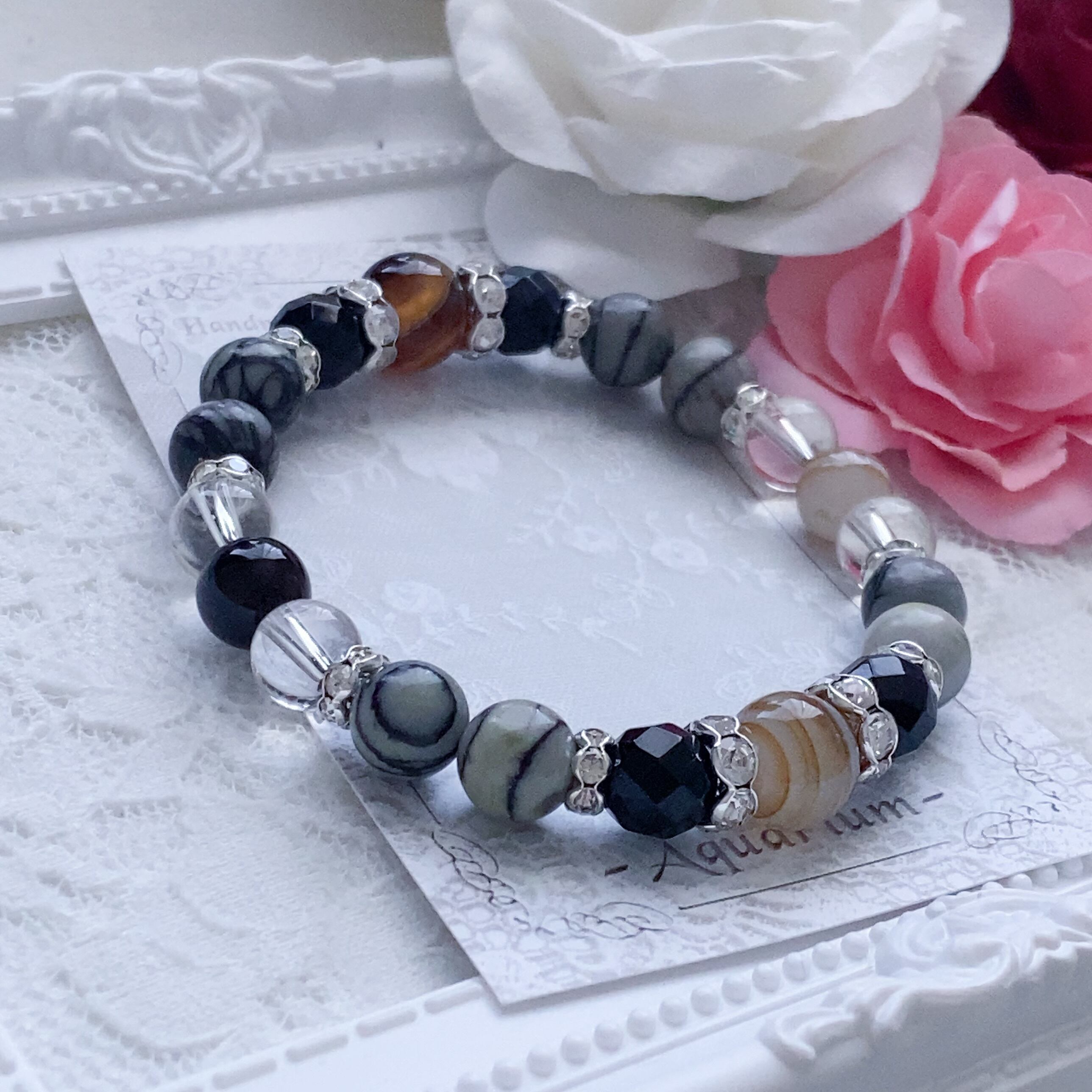 当方の天然石ブレスレットは月の色である、シルバーカラーのロンデル(装飾)を使用しているのもこだわりのポイントです!