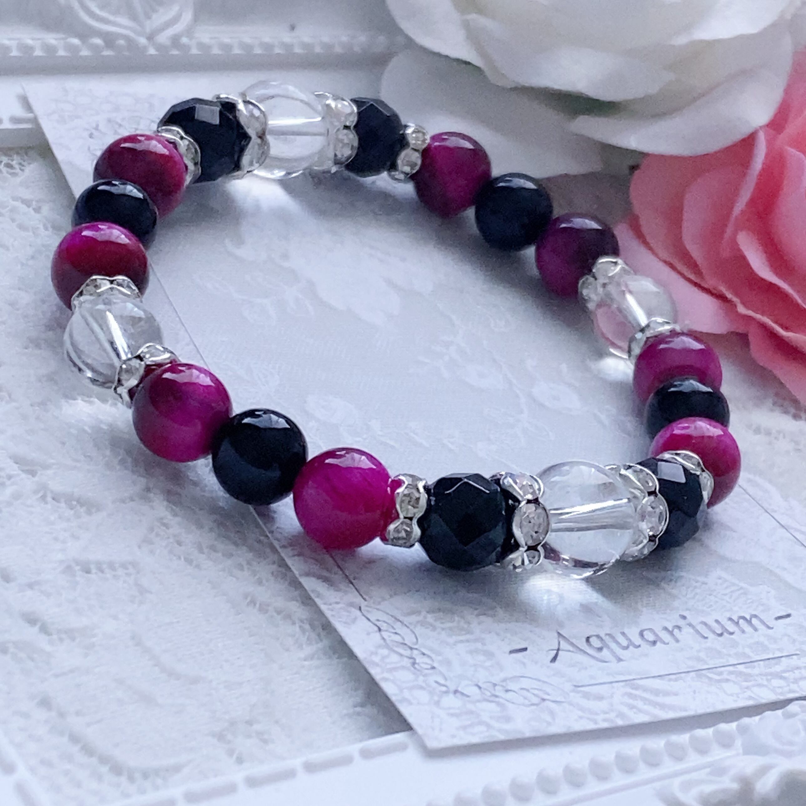 またオニキスとタイガーアイを交互に配置して組み合わせることで、周りの環境に流されず、強い意志で目標達成するパワーを得ることができます。
