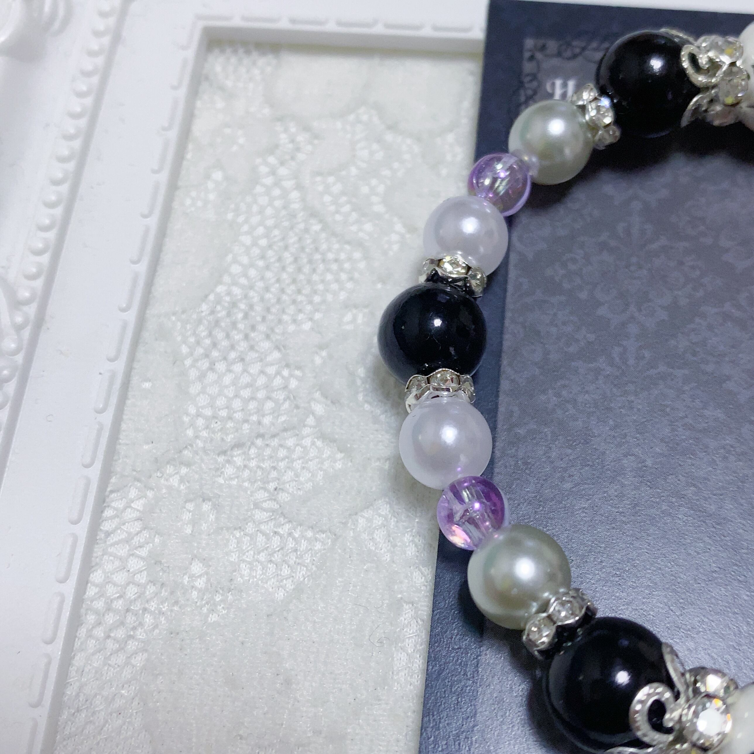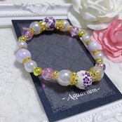 ブレスレットのビーズは主に8ミリサイズのビーズで作っており、メインの飾りとなるビーズは10〜14mmほどの大きめのビーズを使用しております。