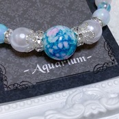 ブレスレットのビーズは主に8ミリサイズのビーズで作っており、メインの飾りとなるビーズは10〜14mmほどの大きめのビーズを使用しております。