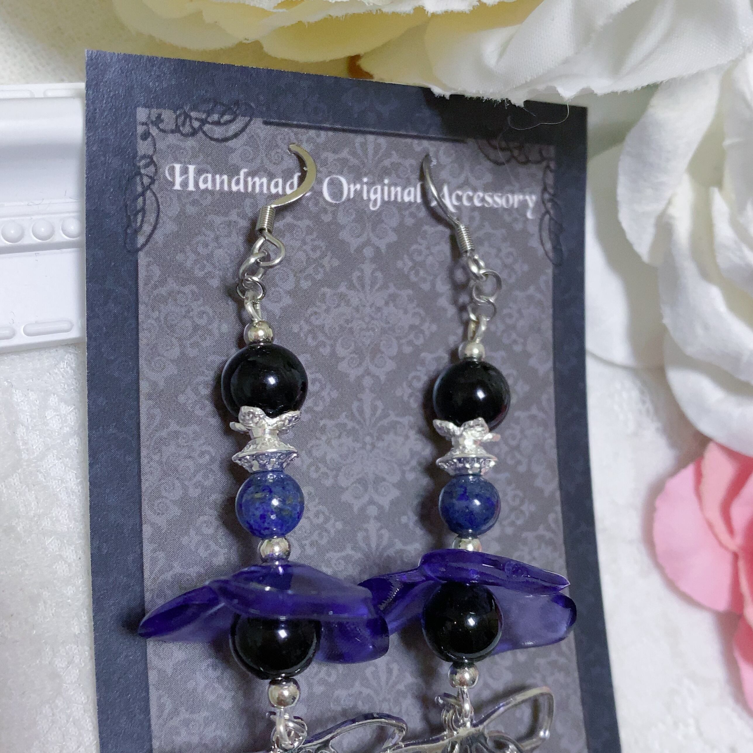 【厄除け、魔除けのお守り】月の御加護(R16)( 天然石 パワーストーン オニキス ラピスラズリ )天然石鑑定士が作るピアス /イヤリング