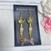 チャームはアンティークのような斑模様を使っているので、大人っぽくもつけられる黄色です。