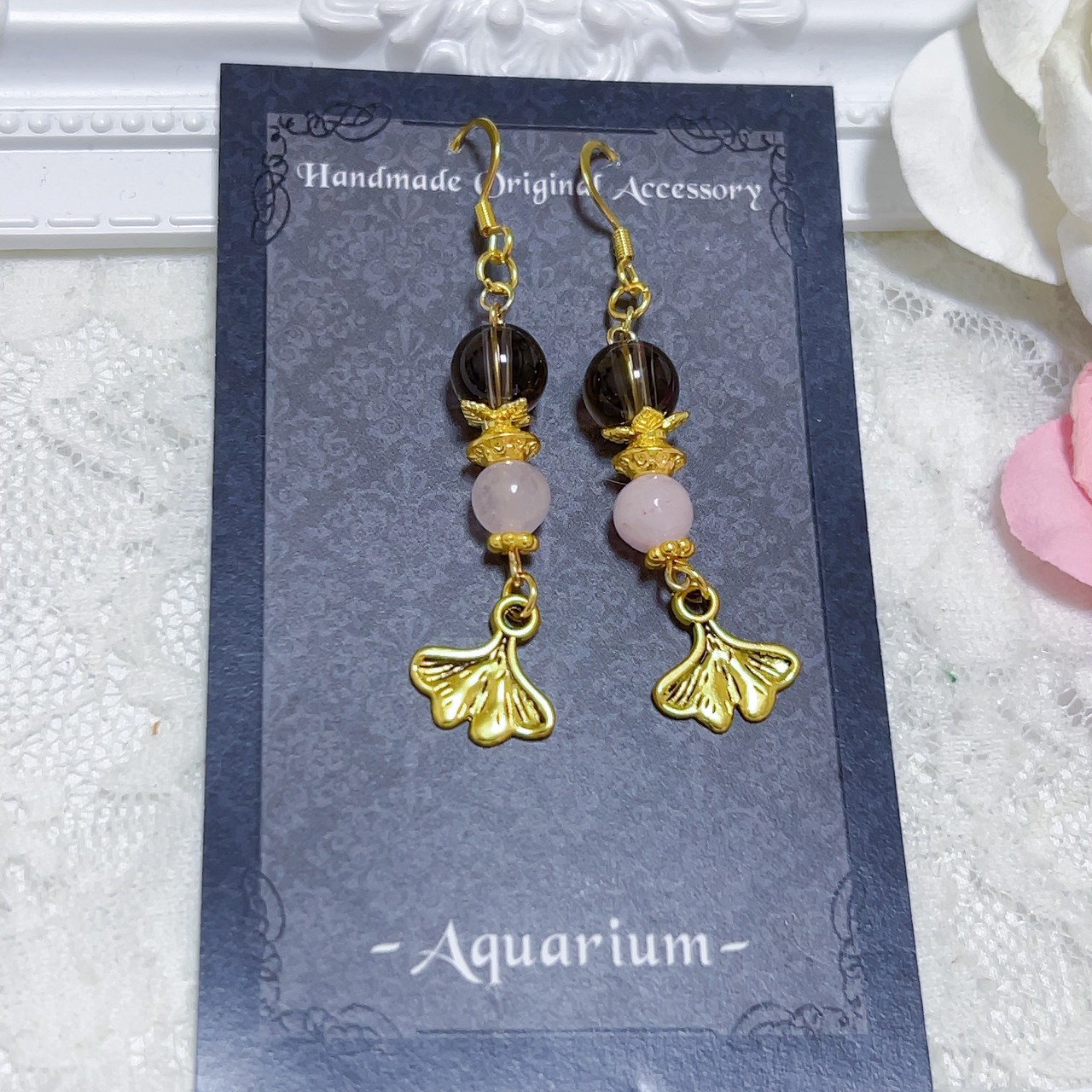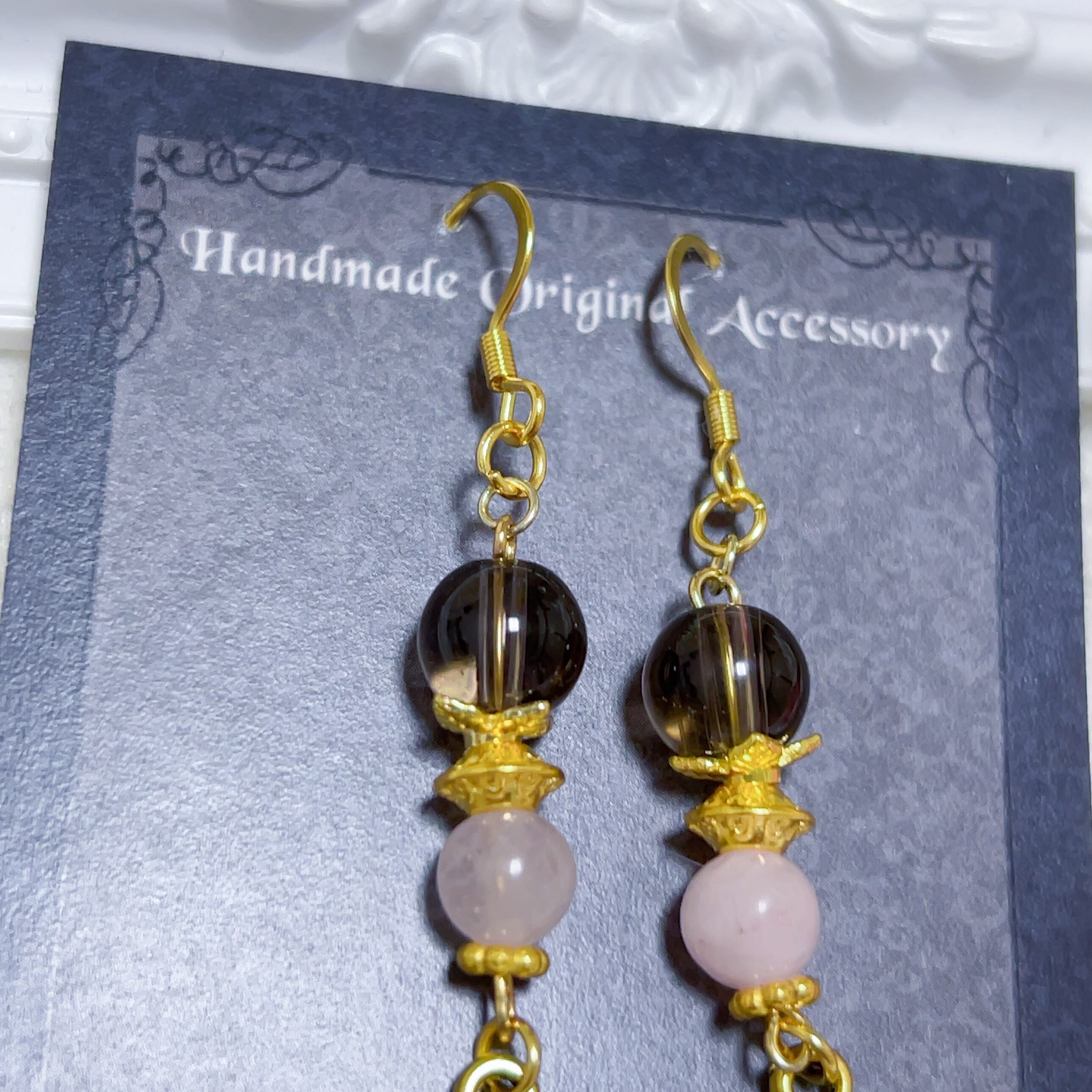 【 女性の仕事運up】月の御加護(R29) ( 天然石 パワーストーン スモーキークォーツ ローズクォーツ ) 天然石鑑定士が作る ピアス / イヤリング