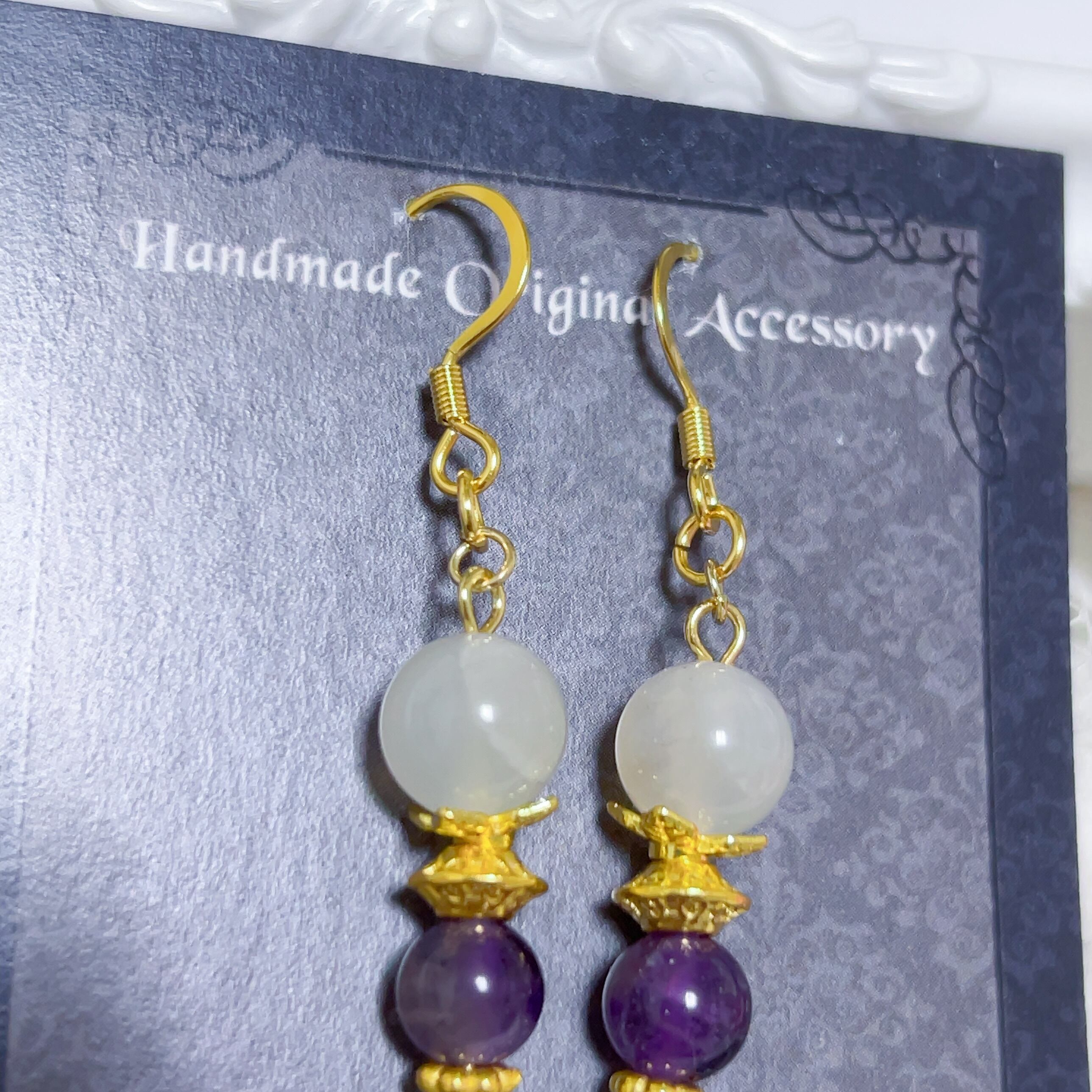 【月と癒し、理想的な恋愛 】月の御加護(R31) ( 天然石 パワーストーン ムーンストーン アメジスト ) 天然石鑑定士が作る ピアス / イヤリング