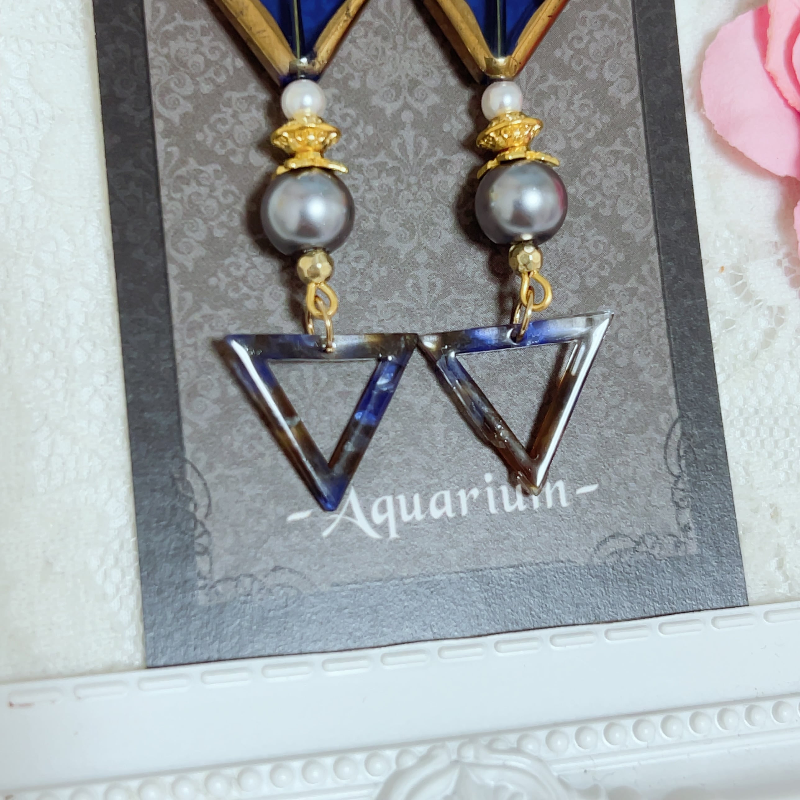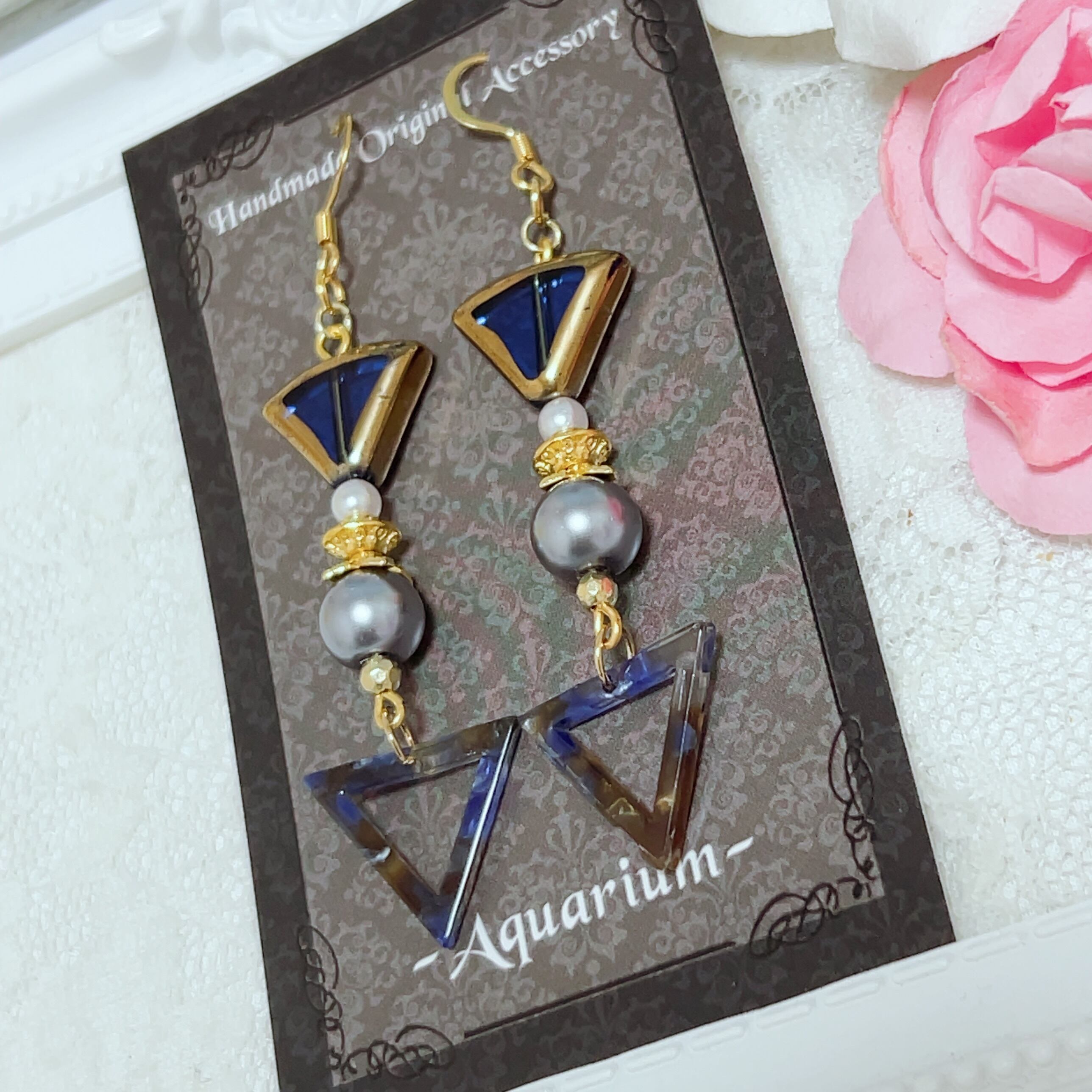 トライアングルのビーズ、チャームを使ってデザインしました。