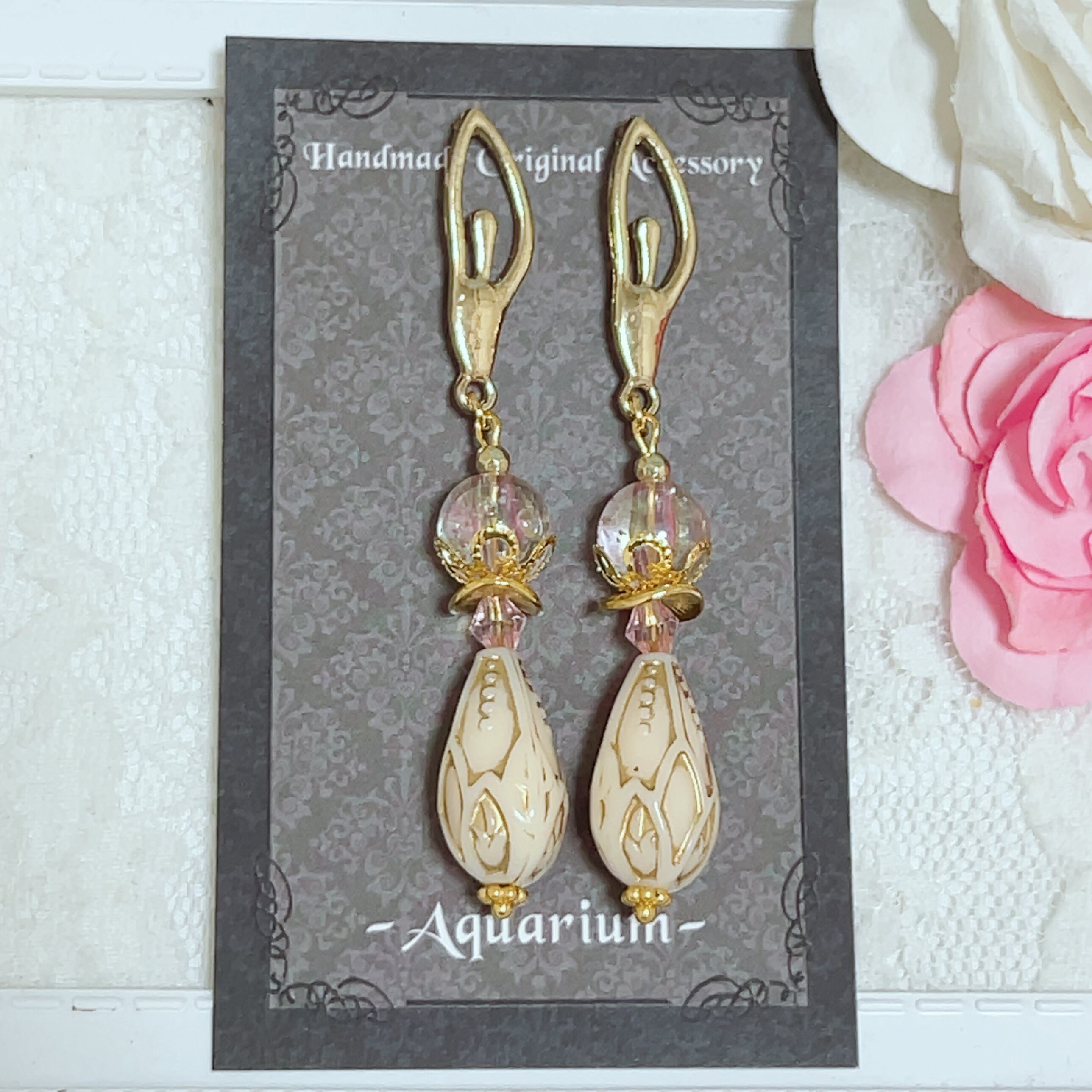 【P929】白アンティークを飾りつけるほのかなピンク ※デザインホストのためイヤリング変更不可