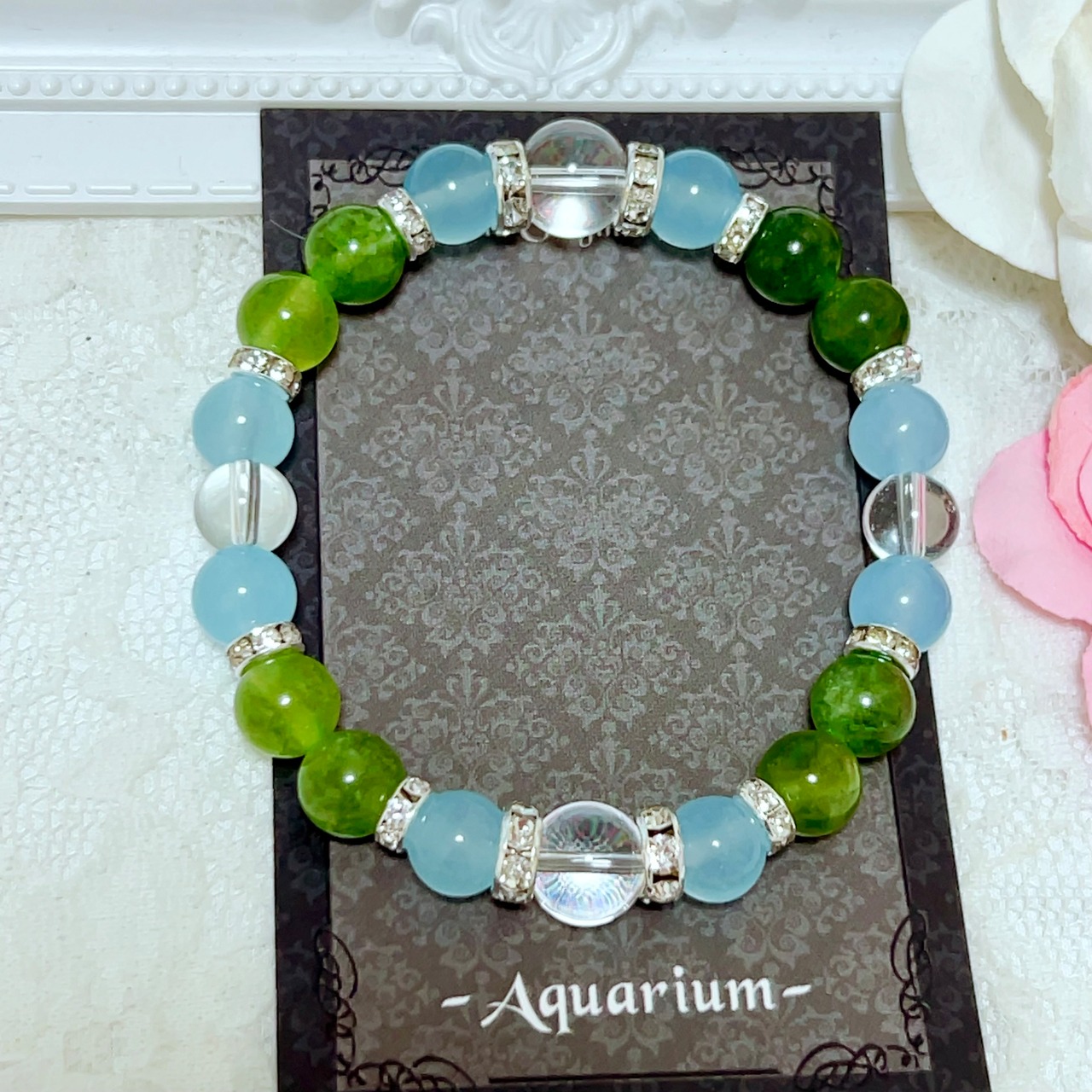 アクアマリンと合わせることで、他人に愛想良く対応できない人におすすめの組み合わせとなり、対人関係のストレスが軽減します。